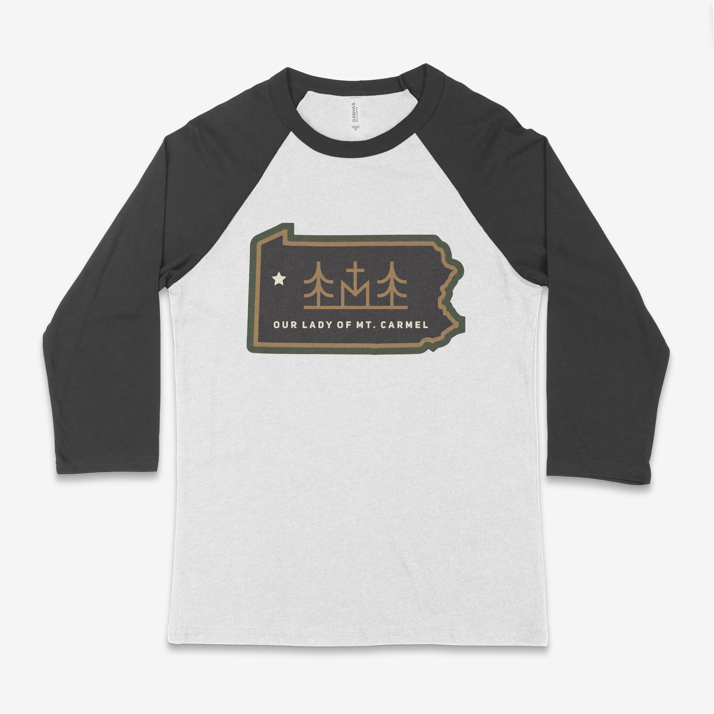 Celebrate the 2025 camp season at Our Lady of Mt. Carmel Summer Camp & Retreat Center with this limited edition 3/4 sleeve baseball tee. This design reflects this year’s camp theme: “The Temple and the Wilderness.”