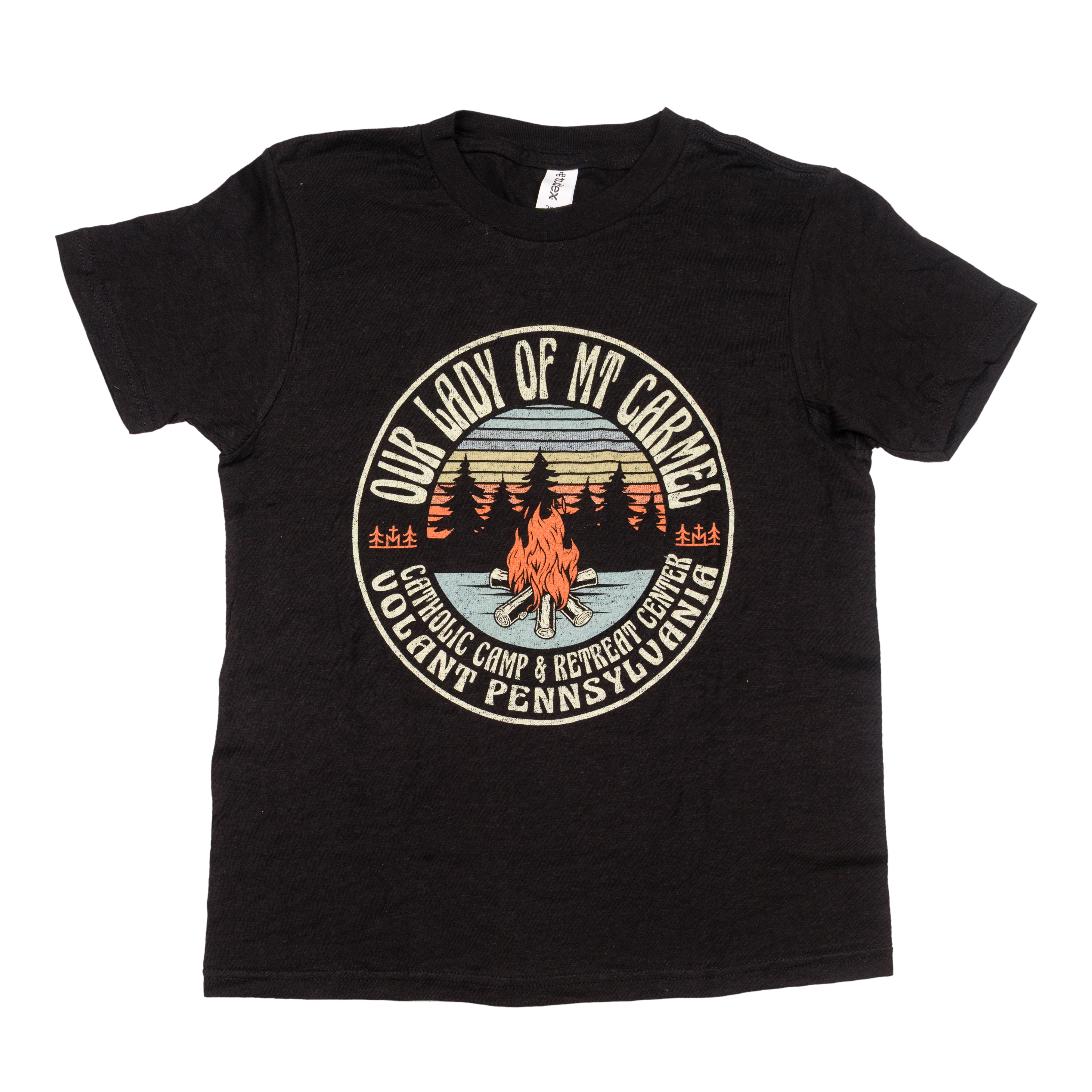 Campfires fade, but memories (and great t-shirts) last forever! This black youth shirt features a retro-inspired campfire graphic: a fun, faith-filled reminder of their summer adventures. Perfect for post-camp hangouts, school days, or cozy nights at home dreaming of next year’s bonfire.