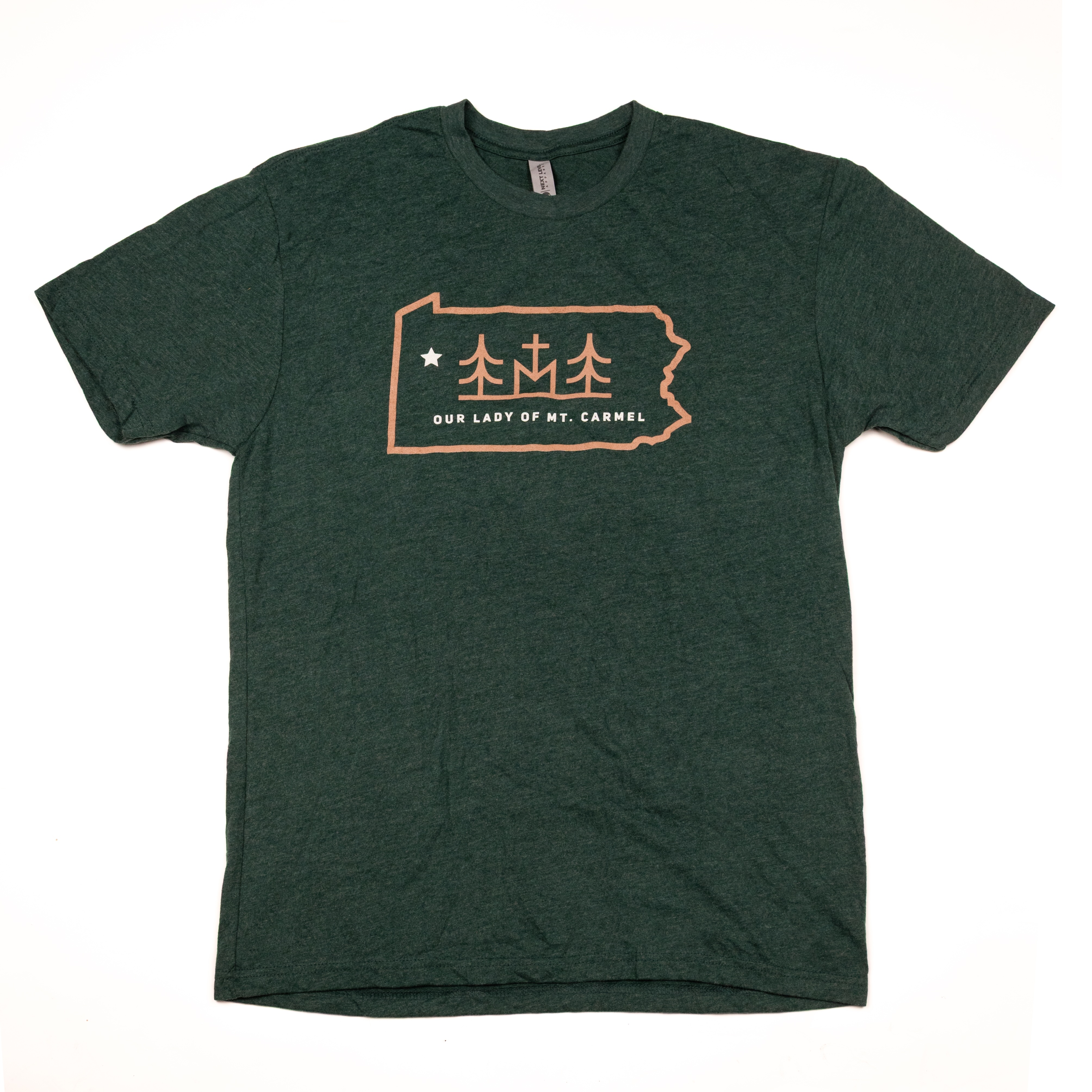 Simple, clean, and full of camp spirit. This cotton tee in our classic army green features the official Our Lady of Mt. Carmel logo. It's a timeless way to represent the camp you love. Whether you're a proud parent, camp alum, or supporter, this shirt is a great way to show your connection to a place where faith and fun meet all summer long.